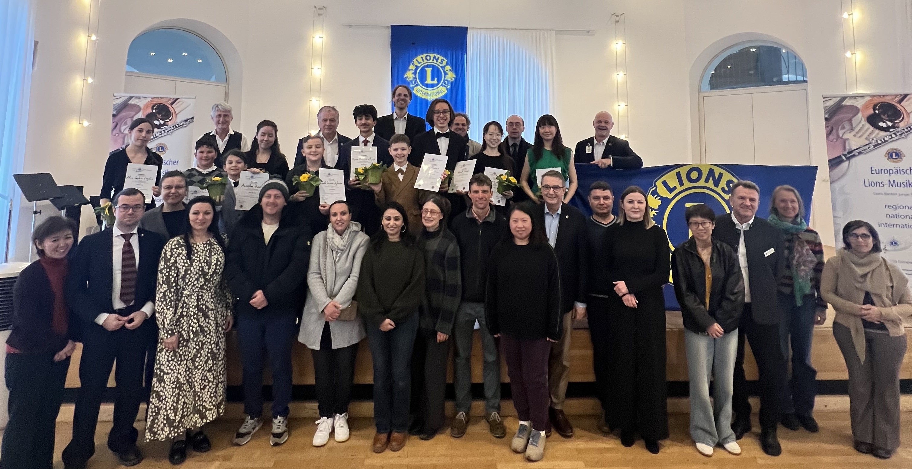 Alle Teilnehmerinnen und Jury-Mitglieder des Lions Musikpreis 2026 in 111-SN sowie die Lions-Vertreter DG Storck und KMP Härdtner